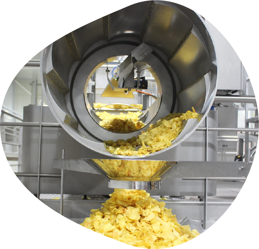Our portfolio includes solutions for the application of salts, aromas, and liquids, as well as systems for product accumulation and vertical elevation